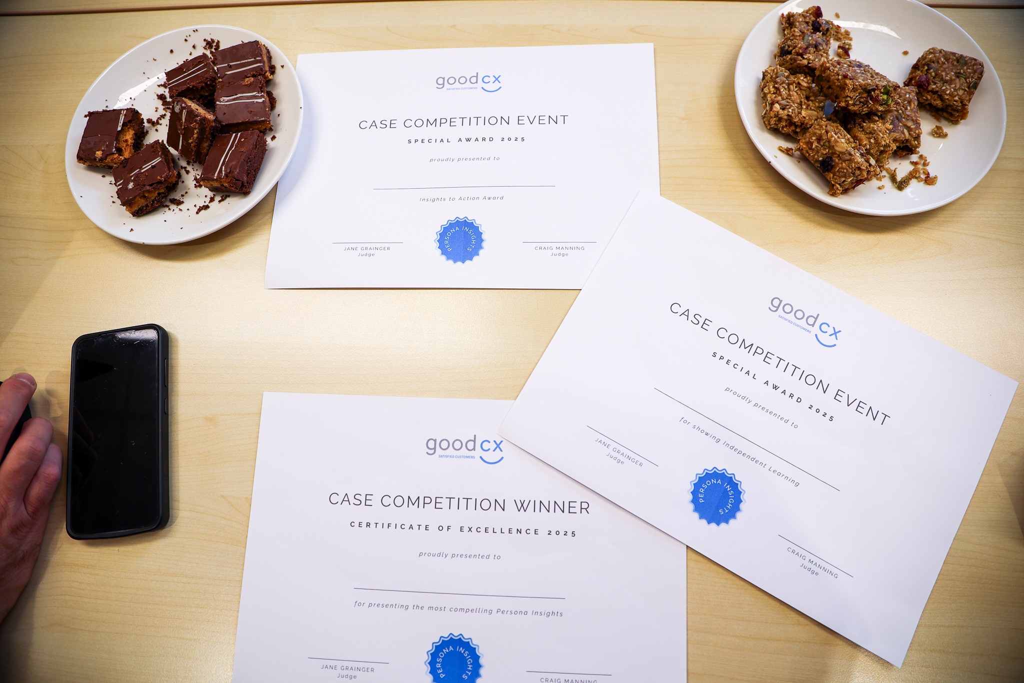Insights do matter. As the competition unfolded, each intern participant – Chloe, Emma, and Christine – became a mirror for their client: mining for and reflecting back hidden insights, long-held assumptions, and untapped potential. Transitioning from theory to practice, they learned that persona development isn’t a box to tick; it’s a living, breathing dialogue with consumers. Who are real people. And with bigger fish to fry than buying services. In fact, the most meaningful insights often came not from big data but from the smallest, nearly-forgotten anecdotal stories: a customer’s offhand comment, a testimonial buried in an old inbox, a question no one dared to ask until now.